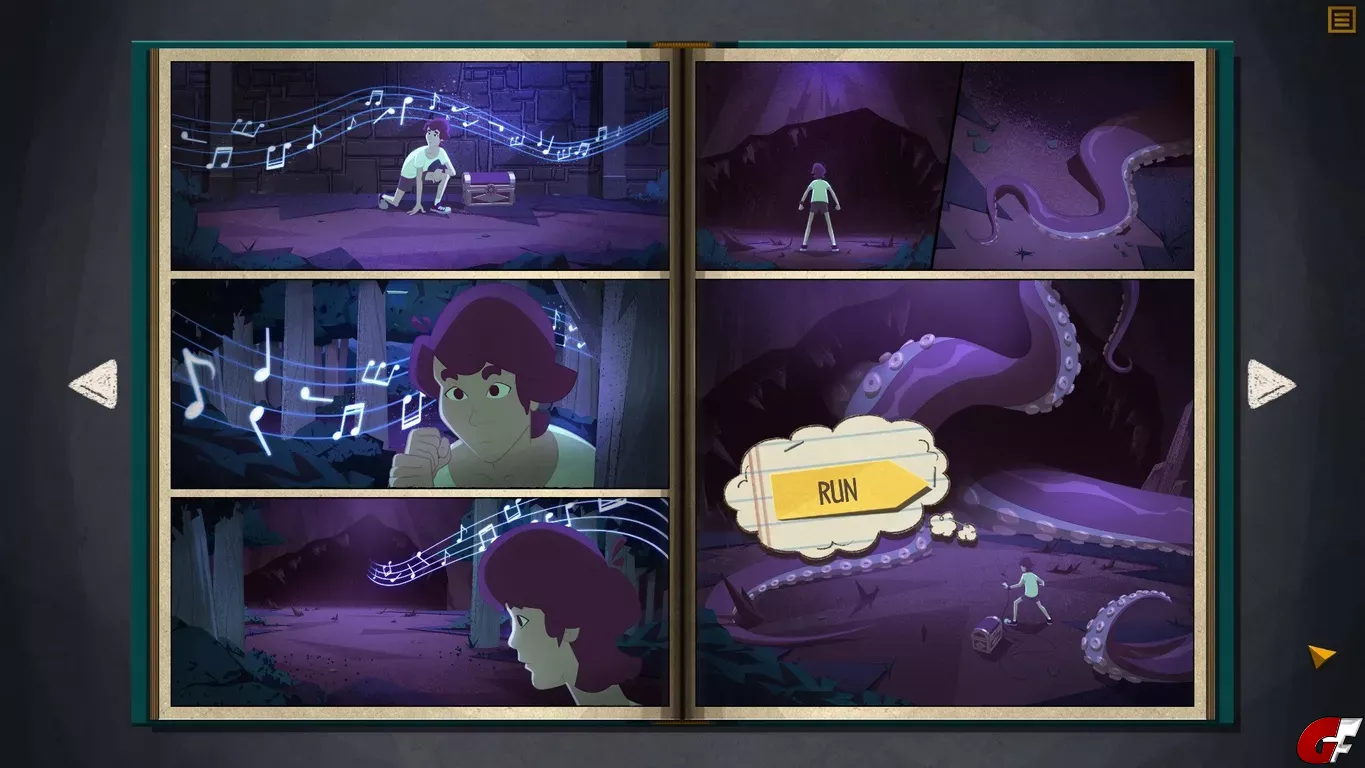 Fate of Kai ist zwar ein Adventure, aber kein klassisches Point-and-Click, sondern vielmehr eine Visual Novel mit einem sehr speziellen Ansatz. Wir blättern uns durch ein Comicbuch , welches die Geschichte von Kai erzählt. Dabei können wir mit manchen Bildern interagieren, das bezieht sich hauptsächlich darauf, Verben zu nehmen, um diese dann woanders wieder einzusetzen. Wir können aber auch durch ein Schlüsselloch schauen oder in die Vergangenheit reisen, um dort etwas zu verändern. Jedes mal, wenn wir den Lauf der Geschichte geändert haben und wir weiterblättern, bekommen wir das Ergebnis zu sehen und ob wir eben voranschreiten, oder in einer Sackgasse landen. Es gibt auch einige interessante Rätsel und jedes Kapitel überrascht uns von Neuem. Ganz am Ende des Spiels gibt es die Auflösung, was es mit Kais Reise auf sich hatte und wir werden auf jeden Fall überrascht. Die Spielzeit ist leider sehr kurz, aber unterhalten hat mich dieses kleine Spielchen dennoch.