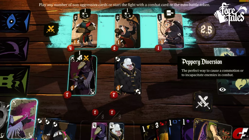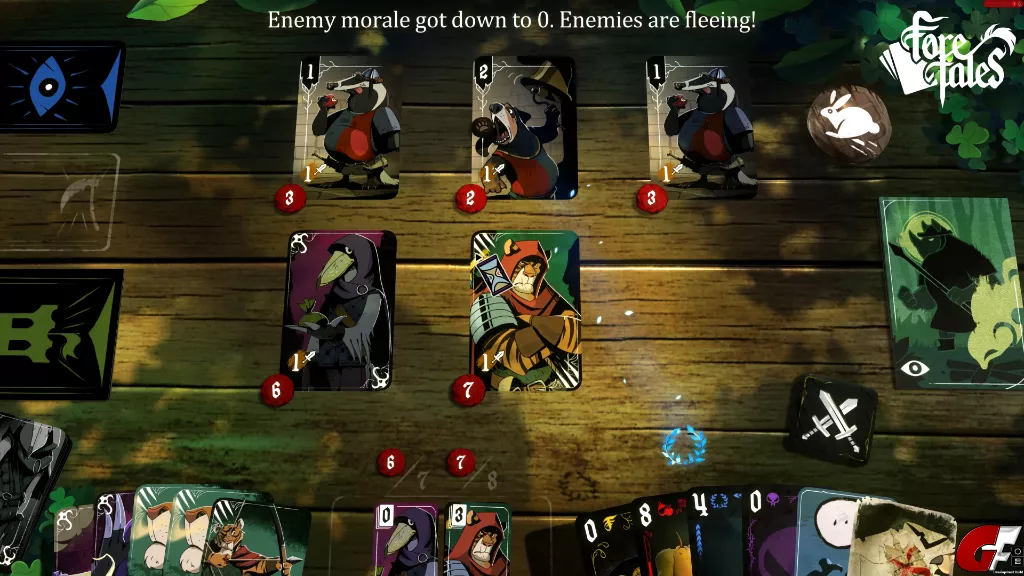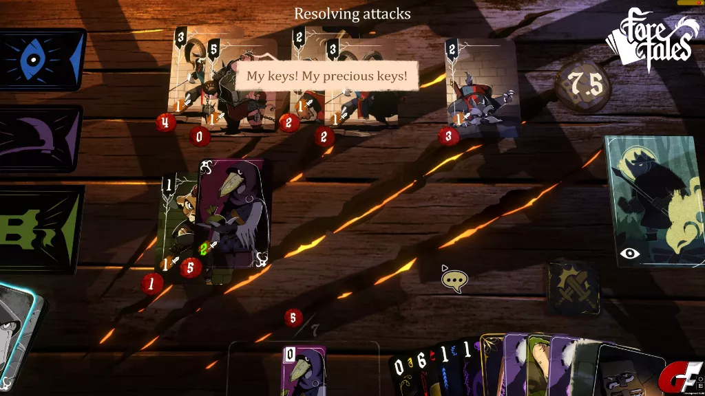 Auf der Gamescom hatte mich Foretales schon in seinen Bann gezogen und auch jetzt hält es mich noch fest im Griff. Dass wir dieses Spiel auf so viele Arten angehen können hat mir am meisten gefallen. Gewalt ist hier zwar eine Lösung, aber definitiv nicht die beste. Leider waren manche Aufgaben meiner Meinung nach nicht gut erklärt, man hat zwar die Glühbirne als Hilfe-Funktion, aber die musste ich manchmal öfters drücken als es mir eigentlich lieb war, auch wenn es keinen Effekt auf das Spiel hatte. Auch hätte ich mir gewünscht, dass, nachdem man das Spiel durchgespielt hat, bzw. der erste Durchlauf beendet ist, schon weiß, was sich hinter den jeweiligen Missions-Karten befindet. Etwas mehr Vertonung hätte ich mir schon noch gewünscht, aber immerhin haben wir einen großartigen Erzähler. Das Spiel kann auch frustrierend sein. Manchmal brauchen wir eine bestimmte Karte, um an die ranzukommen musste ich dann doch des Öfteren andere Karten verschwenden, nur um diese eine Karte erscheinen zu lassen.