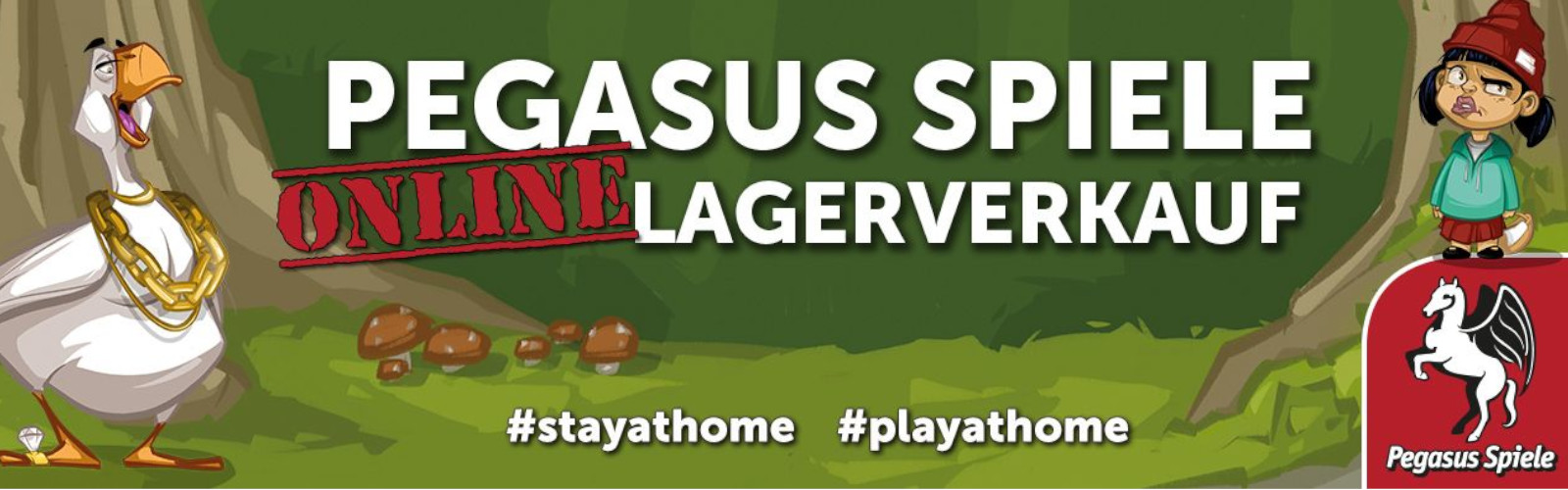 Aufgrund der Ausbreitung des Corona-Virus musste der ursprünglich für den 27. und 28.03.2020 geplante Lagerverkauf bei Pegasus Spiele in Friedberg abgesagt werden, ebenso wie kurz zuvor bereits die Spiel Doch! in Duisburg. Unter dem Motto #playathome möchte Pegasus Spiele interessierten Spielern dennoch die Frühjahrsneuheiten präsentieren und zum zuhause Spielen einladen. Daher wird der ursprünglich geplante Lagerverkauf ab sofort online über den Pegasus Spiele Shop stattfinden. Die Neuheiten So nicht, Schurke! und Trails of Tucana sind ab sofort erhältlich, Treelings und Memorinth treffen voraussichtlich nächste Woche ein und sind ebenso Teil des Lagerverkaufs.