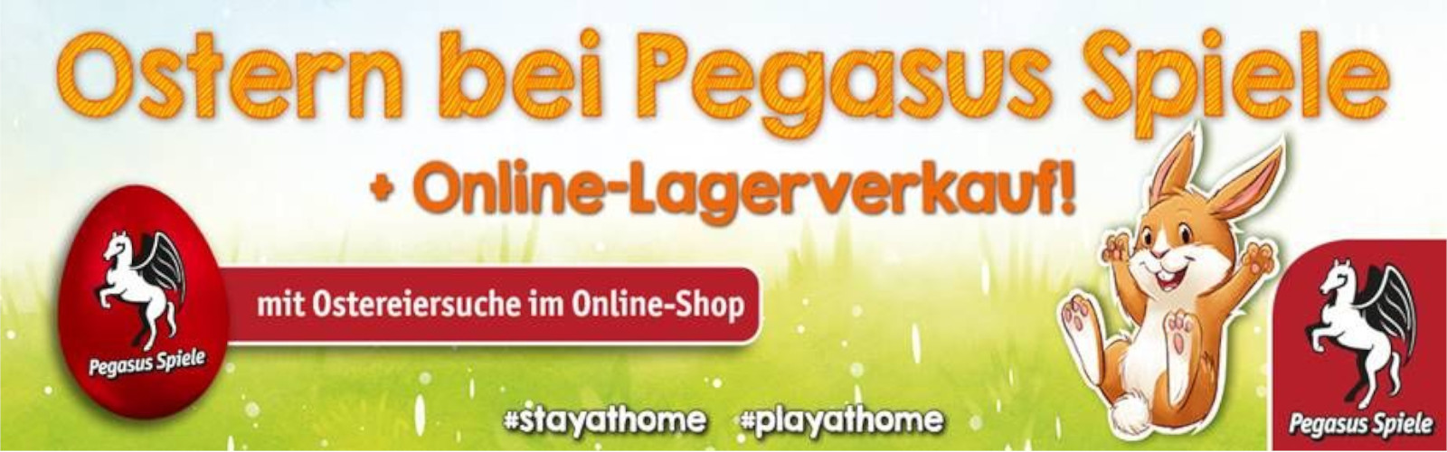 Bei Pegasus Spiele hat der Osterhase schon vorbeigeschaut: Im Online-Shop von Pegasus Spiele sind ab sofort rote Ostereier mit dem Pegasus-Logo versteckt. Jeder, der ein solches Ei findet und es anklickt, erhält einen Rabattcode in Höhe von 10%.